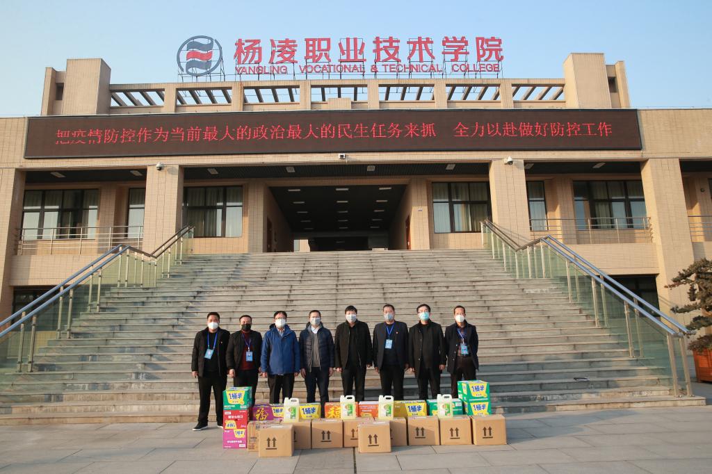 郑伟谋、彭永智、代选谋、曹亚歧四人均是杨陵区村干部,疫情发生以来,每天在基层担任着繁重的执勤工作,但他们还是抽出宝贵的时间联系购买物资,最后将40箱方便面和10箱消毒液送到学院,为奋战在疫情防控一线的工作人员送上一份特殊的关怀。
