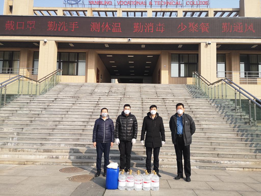 2月12日上午,中国银行杨凌示范区支行为我院捐赠了一批疫情防控应急物资——50升84消毒液、50升酒精消毒液和100双医用手套。学院党政办负责人代表学院接受捐赠,并表示感谢。
