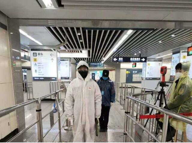 地铁作为广大市民出行的常用交通工具,地铁站内又属于人员密集、环境封闭、通风条件相对较差的公共场所,在疫情防控工作上有着重大责任。特别是杨国庆、索琴和李娜所在的北大街站,周边医院较多,每天往来的乘客里,大多数都是医护人员或者去医院看病的市民,必须严格落实各项疫情防控措施。给乘客测量体温、查看乘客身份证、登记乘客信息、检查乘客是否携带违禁品、配合其他同事做好站内消杀工作……工作时长还是8个小时,但工作量却是平常的好几倍,脸颊、鼻梁被口罩勒出了红印子,一日三餐也变成了包子、泡面、盒饭。