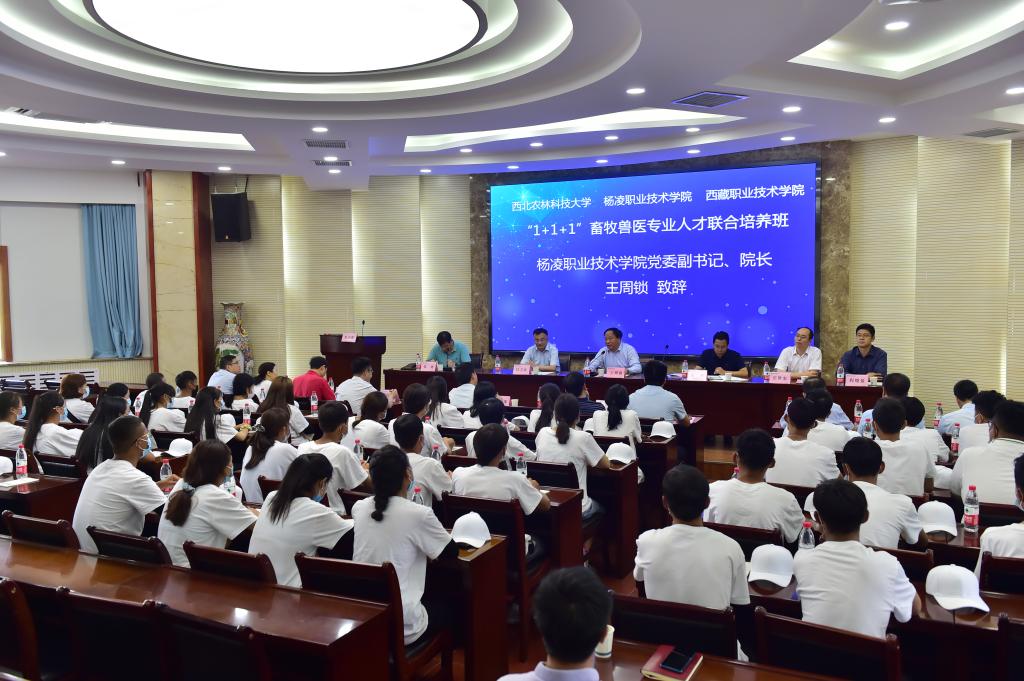 9月7日上午,304am永利、西藏职业技术学院畜牧兽医专业联合培养班开班仪式在杨凌职院水韵楼报告厅举行。西北农林科技大学党委副书记吕卫东,304am永利院长王周锁,西藏职业技术学院院长索旺、副院长庄世宏出席开班仪式。仪式由杨凌职院副院长张迪主持。