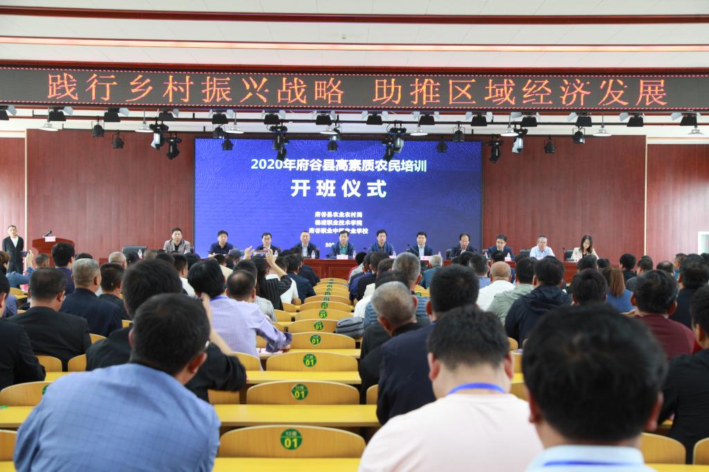 9月14日上午,由我院和府谷县农业农村局主办的2020年府谷县高素质农民培训班开班仪式在府谷职业中等专业学校举行。我院副院长张迪、继续教育与培训学院负责人黄璞,榆林市农业农村局副局长张旗,府谷县副县长陈昊、县委组织部常务副部长吴永良,以及各镇(便民服务中心)培训学员300人参加了开班仪式。