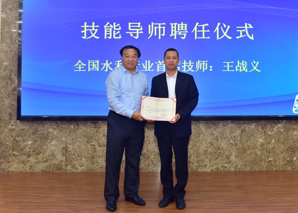 会上宣布了“中水学院”成立决定,“中水学院”领导机构为院长张迪、常务副院长郝红科、书记刘儒博、副院长周孝武、王国强、张卫宁、郭旭新。中水学院为水利工程专业群“政行企校”四方合作发展理事会成立的产业学院,为今后的水利工程分院、海外分院、企业学院等培养高水平技术技能人才,为企业提供高水平技术技能服务奠定基础。随后,政、行、企、校、代表共同为中水学院揭牌,会议签订了校政、校企合作协议,为6家企业颁发了产教融合实训基地牌,聘请了全国水利首席技师王战义为技能导师,聘任蔡焕杰、胡笑涛、闫星、贺群为客座教授,聘任张卫宁、吴学庆、任铁牛、王拴定、许荣辉为产业教授,12家企业向学院授“人才培养基地”牌。