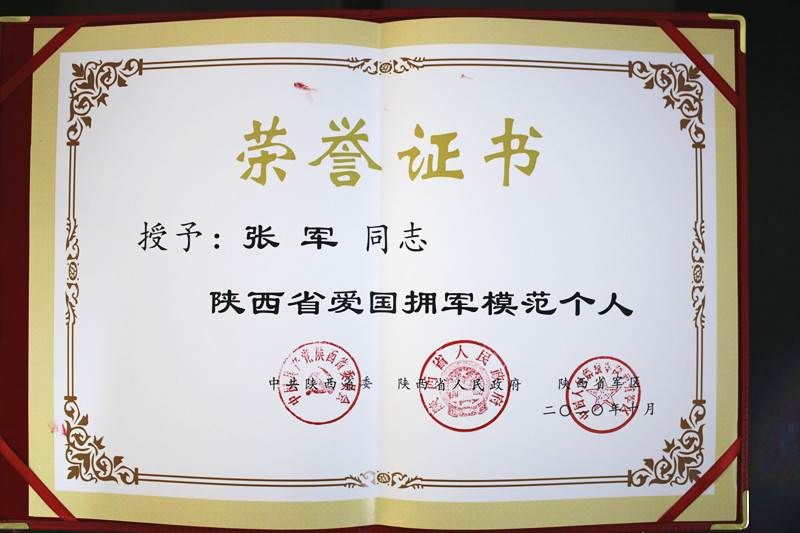 “陕西省爱国拥军模范个人”荣誉称号。