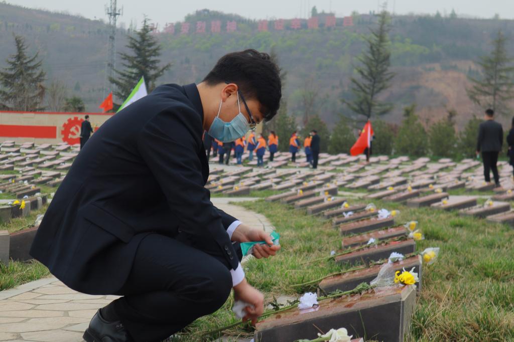 在扶眉烈士陵园,围绕“祭英烈、学党史、悟思想”主题,全体师生奏唱国歌,敬献花篮,默哀并三鞠躬,表达对革命先烈崇高的敬意和深切的悼念之情。缅怀革命先烈的英雄事迹,旨在鼓舞师生斗志,激发师生爱国奉献情怀,继承革命英烈遗志,进一步坚定理想信念,增强责任感和使命感,为学校高质量发展贡献自己的一份力量,使学生工作、共青团工作取得更大的成绩。