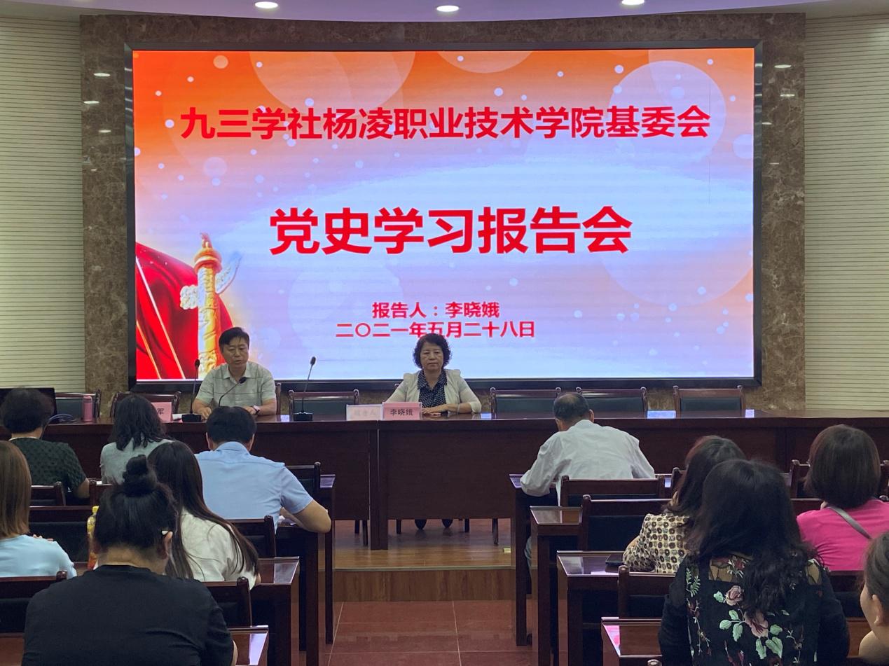 5月28日下午,我校九三学社基委会举行党史学习教育专题报告会,邀请西北农林科技大学马克思主义学院教授李晓娥作题为《中国共产党百年辉煌》的专题讲座。我校九三学社基委会主委问建军主持报告会。