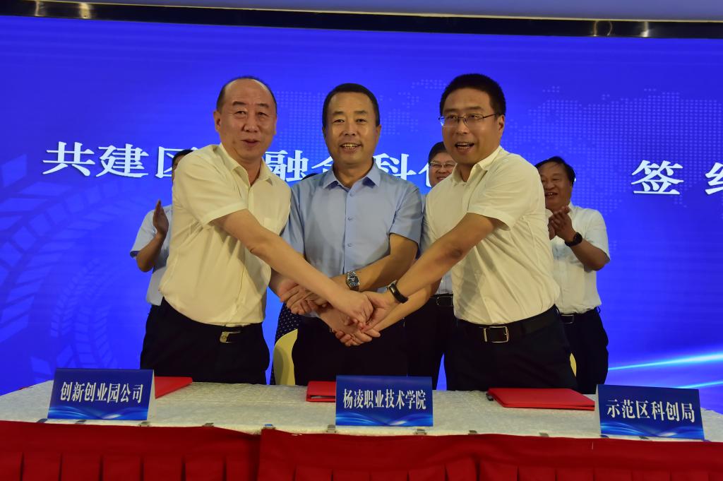 胡俊鹏与示范区科技创新局局长赫思远、示范区创新创业园发展有限公司董事长薛海兵签订了区校融合科创中心暨大学生创新创业教育基地共建协议,为区校进一步融合,地方政府、科技部门与高校合作打下坚实基础;304am永利产教融合处副处长郑爱泉与首批入驻的企业代表签订了入驻协议。