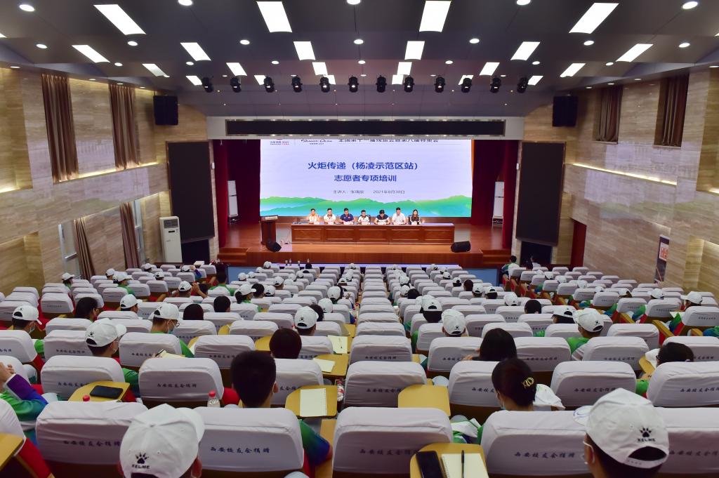 十四运会和残特奥会火炬传递(杨凌示范区站)即将拉开帷幕,为提升志愿者的服务能力和综合素质,保证火炬传递的顺利进行,8月30日下午,十四运会和残特奥会火炬传递(杨凌示范区站)志愿者专项培训在杨凌职院思辩堂举办,杨凌职院100名志愿者参与培训,培训由十四运会组委会先遣组副组长张瑀辰主讲。
