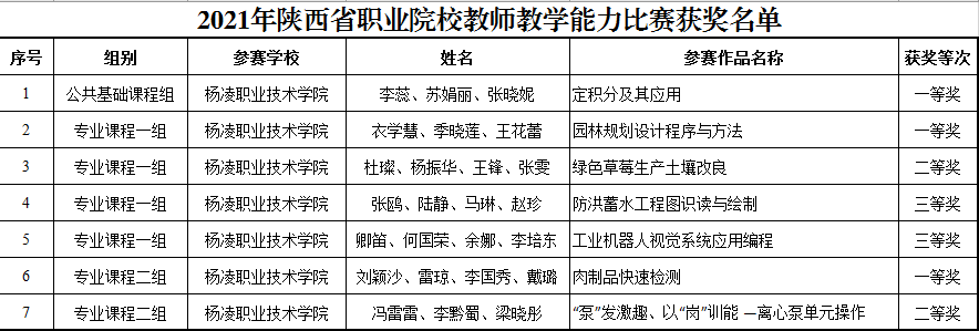 10月25日,省教育厅公布了2021年陕西省职业院校教师教学能力比赛获奖名单,学校获一等奖3项、二等奖2项、三等奖2项,其中两个团队获2021年国赛参赛资格,学校获优秀组织奖。