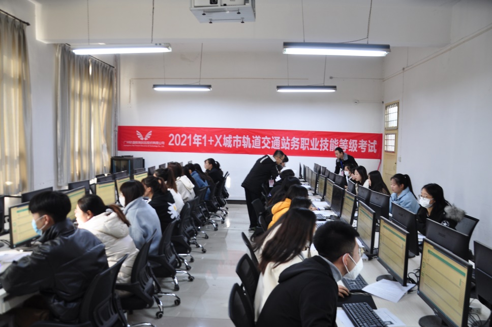 本次考试由交通与测绘工程学院和广州城市轨道交通培训学院共同主办,考试分为理论机考和实操考核,学生考试合格后将获得由广州城市轨道交通培训学院颁发的城市轨道交通站务职业技能等级认证(中级)证书。