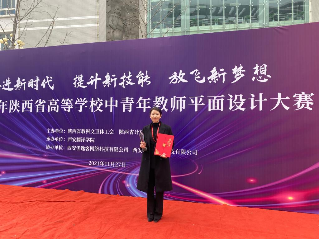 1127日,2021年陕西省高等学校中青年教师平面设计大赛总决赛落幕。学校工会选送的信息工程学院青年教师王芳娟的作品《百年恰是风华正茂》成功入围决赛,并在现场总决赛中获得一等奖,校工会荣获优秀组织奖。