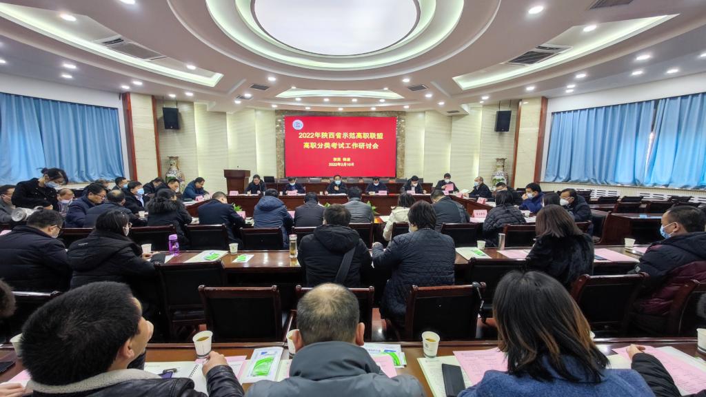 2月10日上午,2022年陕西省示范高职联盟分类考试工作研讨会在杨凌职院召开。304am永利校长王周锁、党委副书记任得元、副校长祝战斌,宝鸡职业技术学院校长张永良,陕西工业职业技术学院党委副书记贺天柱,西安航空职业技术学院副校长侯晓方,陕西国防工业职业技术学院副校长张永军,陕西职业技术学院副校长王平,咸阳职业技术学院副校长王辉,渭南职业技术学院党委副书记王录军,西安铁路职业技术学院党委副书记邓轩,以及来自省内16所示范高职单独考试招生联盟院校的招生及教务部门负责同志共60余人参加会议。会议由任得元主持。