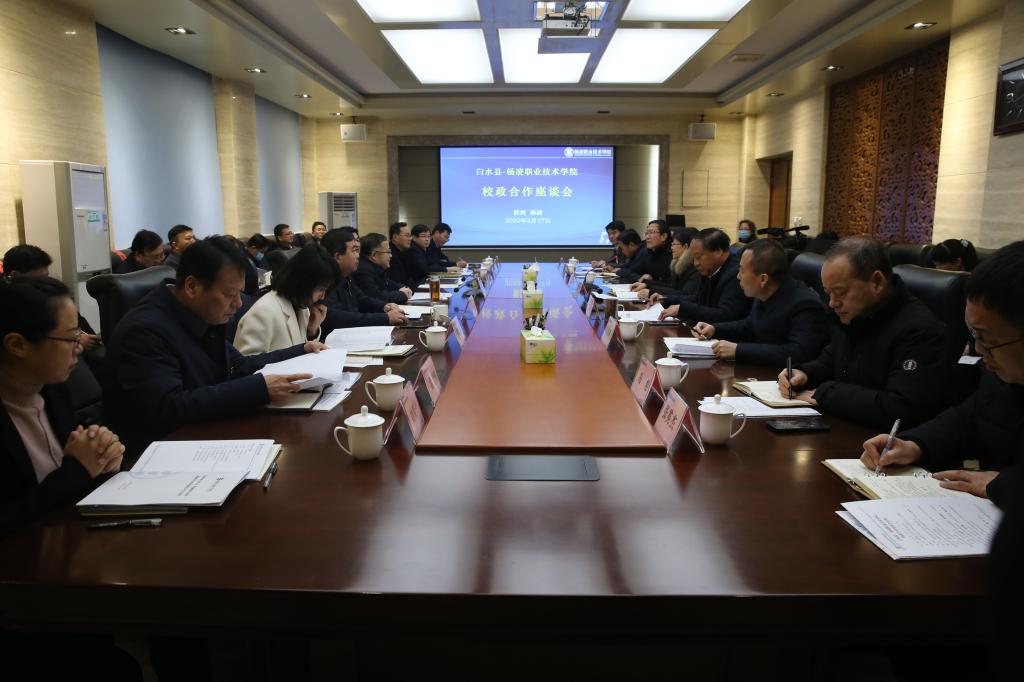 李扩介绍了白水相关情况及本次考察目的,他说,白水县主要围绕苹果、文旅、康养、白酒、能源、制造业六大产业板块重点发力,希望在职业教育发展、人才培养培训、农业产业化发展、产学研用创融合等方面与杨凌职院开展合作,共同探索可在全省乃至全国推广的乡村振兴校地合作新模式,建立双方定期协商机制,努力形成优势互补、互利共赢的良好局面。