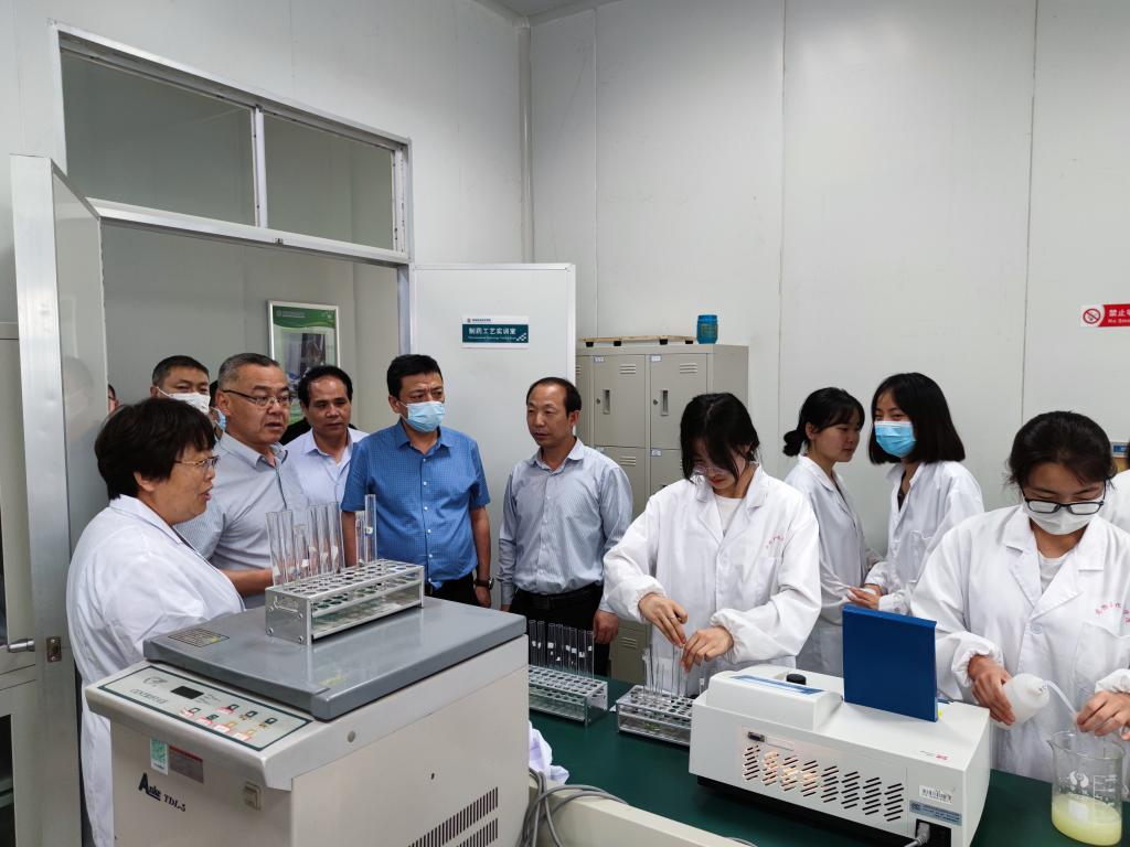 调研组一行对药物与化工学院实训室功能设置、使用状况、承接的社会服务与培训等方面给予了充分肯定,并提出希望,一是充分发挥实训基地作用,提升教育培训质量,更好地服务药品研发、生产、流通行业;二是发挥平台优势,不断为药企、药店等医药相关领域员工提供培训机会;三是加强和药监局、药检所之间的交流合作,抓好管理,用科技激发人才活力,加强科研创新和重大项目承接;四是在人才培养方面大胆创新,形成特有的培训模式,为陕西省医药行业做出更大的贡献。
