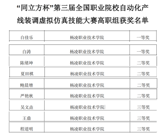 近期,机电工程学院先后组织学生参加第四届陕西省大学生工程制图与3D建模大赛和第三届全国职业院校自动化产线装调虚拟仿真技能大赛2个赛项,获得多项荣誉,其中获一等奖3项、二等奖10项、三等奖14项,3个团队获参加国赛资格。