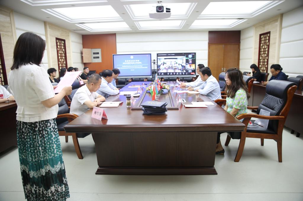 典礼上,国际学院院长杜斌宣读了2022年国际学生毕业生名单,国际学院汉语课程教师拜枫雅代表给国际学生代课的全体任课教师进行了发言。拜枫雅回顾了与国际学生过去三年学习经历,送上了全校老师们对国际学生的期望与祝福。随后国际学生毕业生代表徐金山通过网络平台发言,他满怀感恩地表达了对中国、对母校的感谢、怀念和难忘之情,并表示会珍惜从学校学到的知识和技能,将用所学知识创造美好未来,更会成为中柬两国友谊的友好使者。