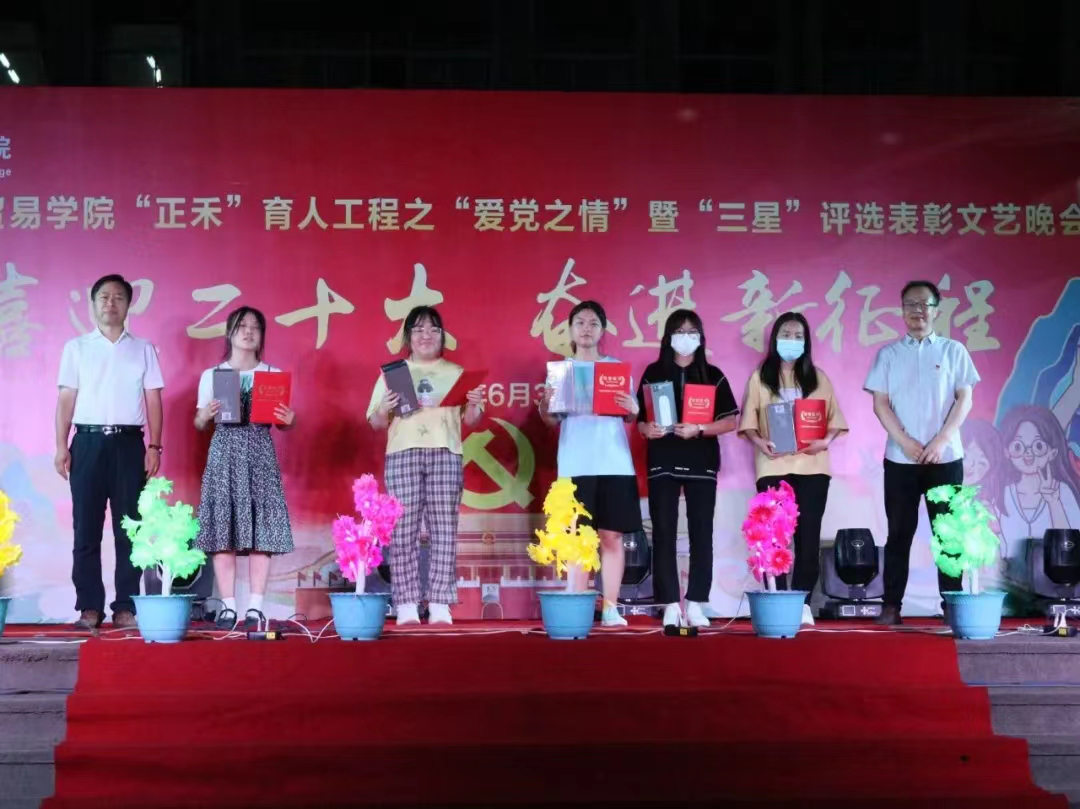 为庆祝中国共产党成立101周年,迎接党的二十大胜利召开,进一步激发广大师生爱党爱国热情,6月30日,经济与贸易学院举办“三星”评选表彰暨“爱党之情”文艺晚会。图书馆馆长问建军,经济与贸易学院领导班子成员,以及学院辅导员、一二年级学生观看了晚会。