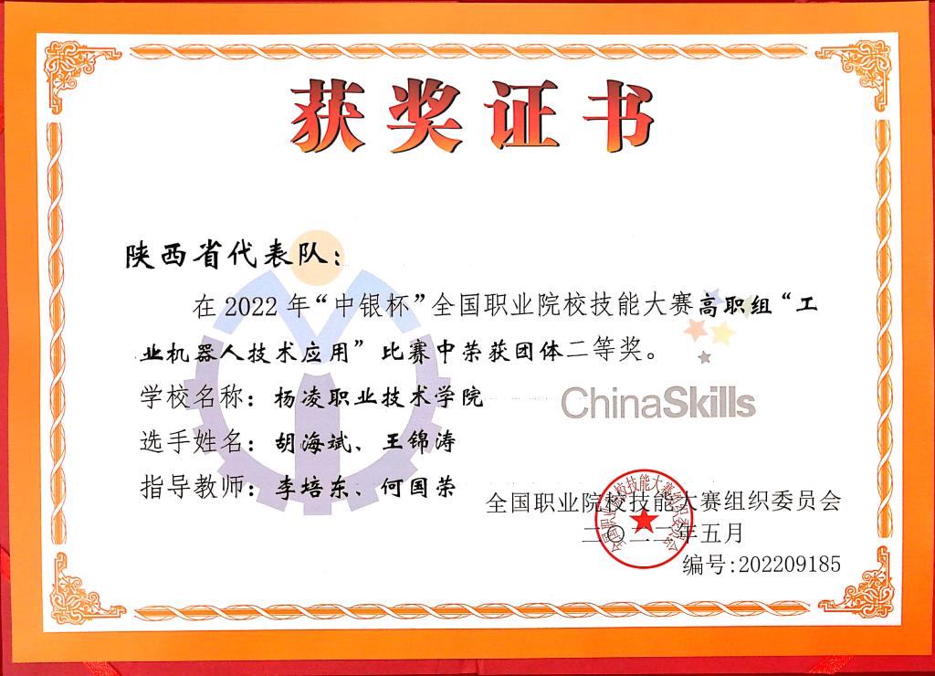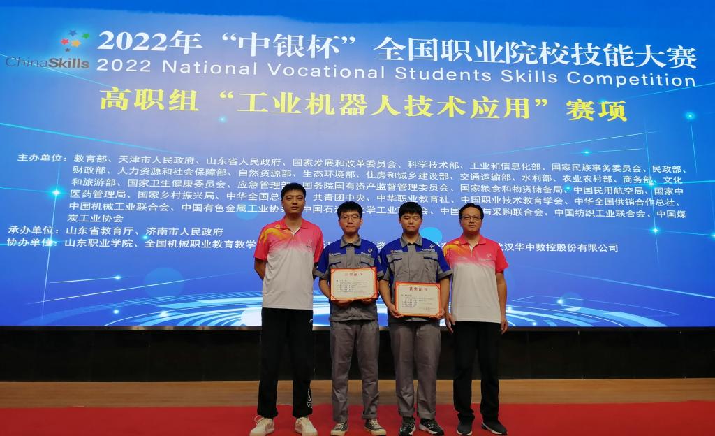8月21日至25日,2022年全国职业院校技能大赛高职组“工业机器人技术应用”赛项在山东职业学院举行,来自全国31个省市区的59支参赛队参加比赛。我校机电工程学院胡海滨、王锦涛两名学生组成的代表队经过激烈角逐,获得二等奖,这是我校首次组队参加该项国赛。