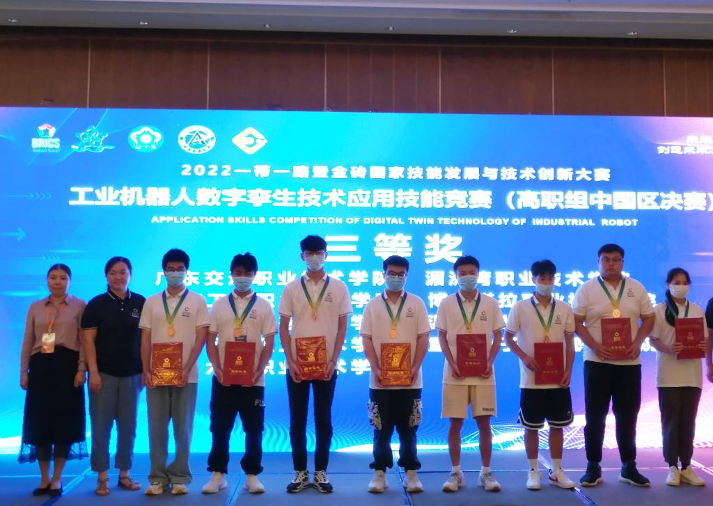 9月14日至15日,2022一带一路暨金砖国家技能发展与技术创新大赛“工业机器人数字孪生技术应用”赛项在福建信息职业技术学院举行,共有来自全国31个省市区的31支代表队参加比赛。由我校工业机器人技术专业学生陈绪坤、严艳秋组成的代表队获得三等奖。