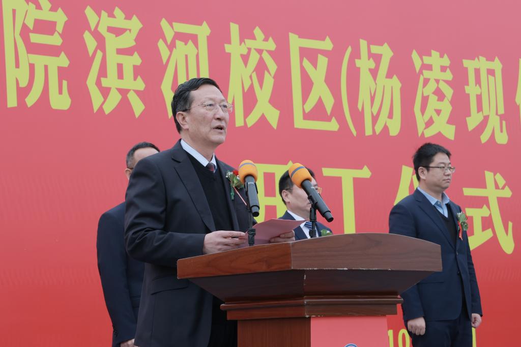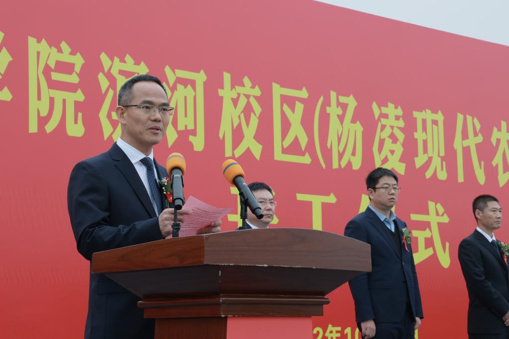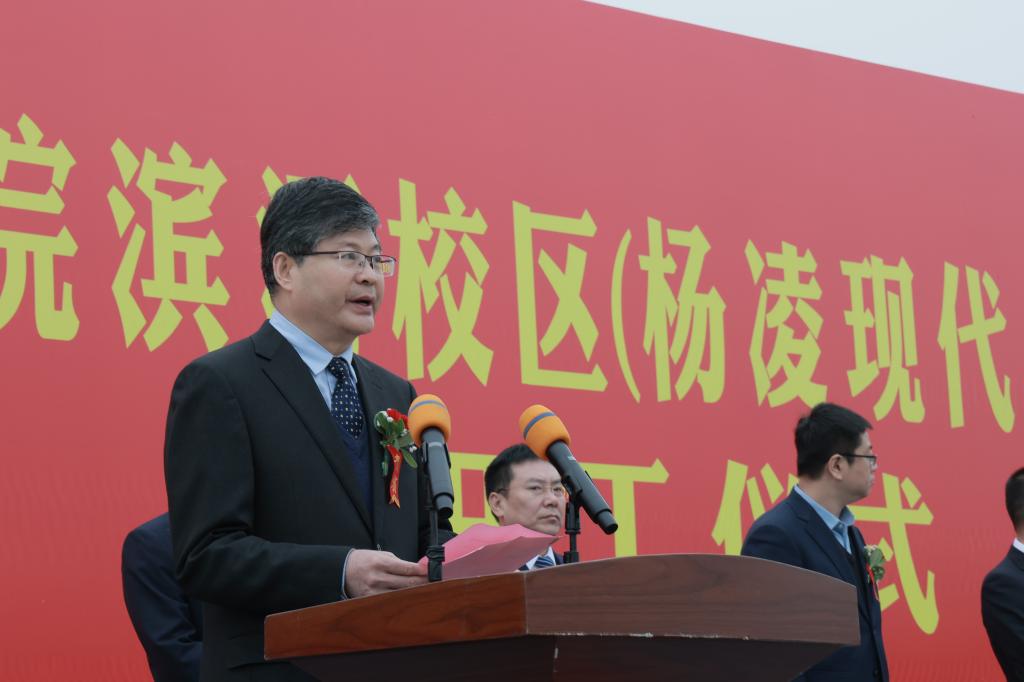 省政协副主席魏增军出席开工仪式,并宣布我校滨河校区建设开工。省委教育工委副书记、省教育厅厅长刘建林,杨凌示范区党工委书记黄思光,杨凌示范区党工委副书记、管委会常务副主任史高领,杨凌示范区党工委委员、管委会副主任袁鸿马,西北农林科技大学副校长马建华,省教育厅发展规划处处长胡海宁,杨凌示范区党工委委员、杨陵区委书记李函;我校党委书记王周锁,党委副书记、纪委书记王勇胜,副校长祝战斌、胡俊鹏;中国建筑第四工程局有限公司西北分公司党委书记、董事长伍山雄,陕西建工控股集团有限公司党委副书记、总经理毛继东,陕西建工控股集团有限公司党委副书记、陕建股份副总经理刘小强,中国建筑一局集团有限公司西北分公司党委副书记、总经理单益永等出席开工仪式。开工仪式由我校党委副书记任得元主持。