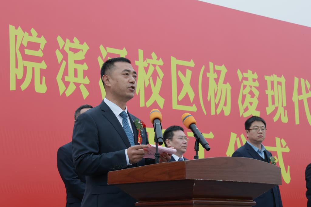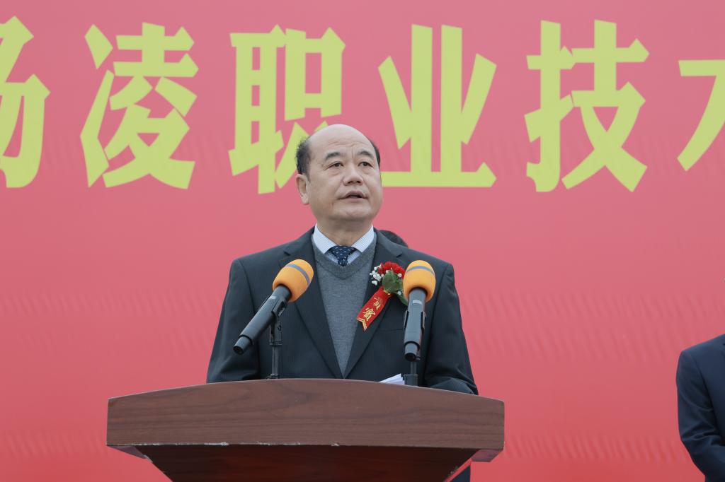 王周锁在致辞中代表学校全体师生向参加滨河校区建设开工仪式的各位领导和嘉宾表示热烈欢迎,向长期以来关心支持学校各项事业发展的各级领导、各界人士和滨河校区参建单位表示诚挚感谢。他指出,滨河校区建设是全体杨职人一直以来的夙愿,承载着学校励志图强的光荣与梦想,是学校推进“双高”建设、升格本科职业大学、实现高质量发展的有力支撑和关键举措。全校上下将认真学习宣传贯彻党的二十大精神,以党的二十大报告中对教育、科技、人才工作的系统阐述为遵循,坚持以立德树人为根本、以强农兴农为己任,扎根杨凌、面向全国、服务世界,紧抓新校区建设这一机遇,全力打造全国农业高职教育新高地,并按照学校“十四五”规划确立的“12468”发展思路,科学实施“六新”方略,深入推进区校融合、产教融合、校企合作,持续优化办学条件,加快建设“中国特色、世界一流职业大学”。