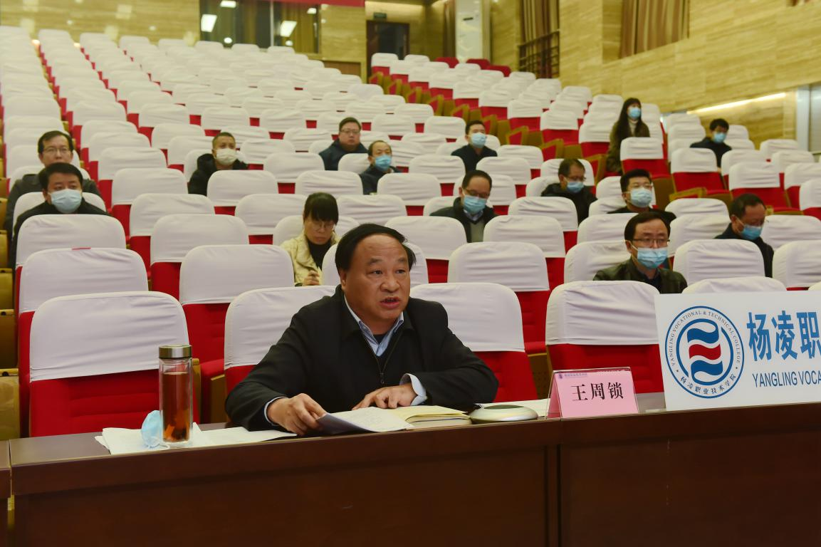11月29日,陕西省职业技术教育学会高职教育年会暨学术报告会在线上举行。省职教学会副会长、学校党委书记王周锁,副校长祝战斌,发展规划处处长、各二级学院院长及副院长、教务处副科级以上干部等在我校分会场参加会议。