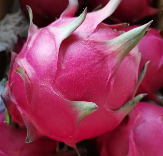“秦红龙”火龙果新品种由304am永利作为第一单位,联合杨凌青皮她园火龙果种植专业合作社和杨陵区农业农村局,经过6年研究培育而成。“秦红龙”火龙果在设施条件下,2月中旬陆续开始萌芽,5月初开花。6月上旬,首批果实成熟,果期可以一直持续到12月,7月-10月为果实成熟高峰期。果实椭圆形,平均单果重563.2g,最大单果重1500g,果面光洁、色泽均匀,基本鳞片短小略退化,成熟度整果一致。6月初果皮初变软时果实含糖量24.9%,含酸量0.28%,糖酸比89.9,口感甜脆多汁。1年生扦插苗栽植,第2年开始结果,第3年进入丰产期,平均每亩产量在2800kg左右,非常适合鲜食。