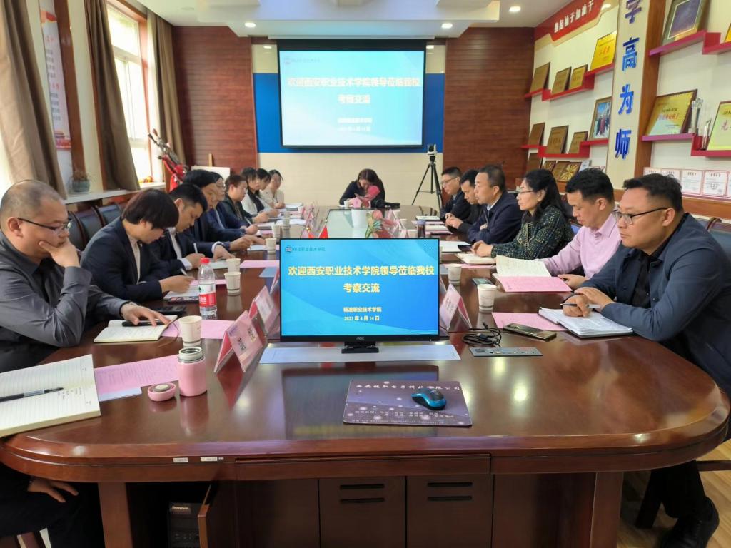 4月14日,西安职业技术学院副校长符虎刚等一行11人来我校考察交流。副校长胡俊鹏出席座谈会。