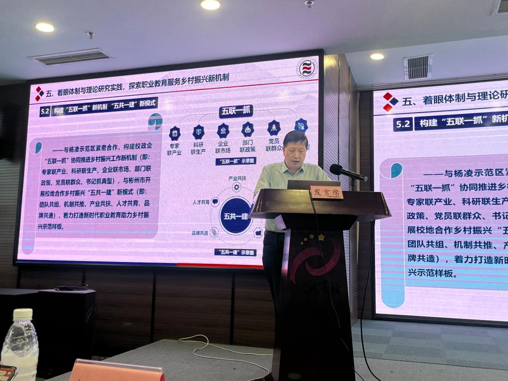 会上,各院校围绕“双高计划”中期绩效评价后的反思与改进工作思路进行交流。祝战斌以“聚焦高特强、做好实新优,推进‘双高’学校高质量建设”为题,从构建一流人才培养新架构、构建基层人才育训新体系新模式、打造农业科技创新新高地、构建产教融合校企合作新形态、探索职业教育服务乡村振兴新机制等5个方面作了交流发言。下一步,学校将以“双高计划”中期绩效评价和2022年绩效考核为契机,走深做实校企合作,不断强化科技创新,实现高质量产教融合、科教融汇,聚焦“高、特、强”,做好实新优,扎实推进“双高计划”后续各项建设,打造旱区农业职教标杆院校。