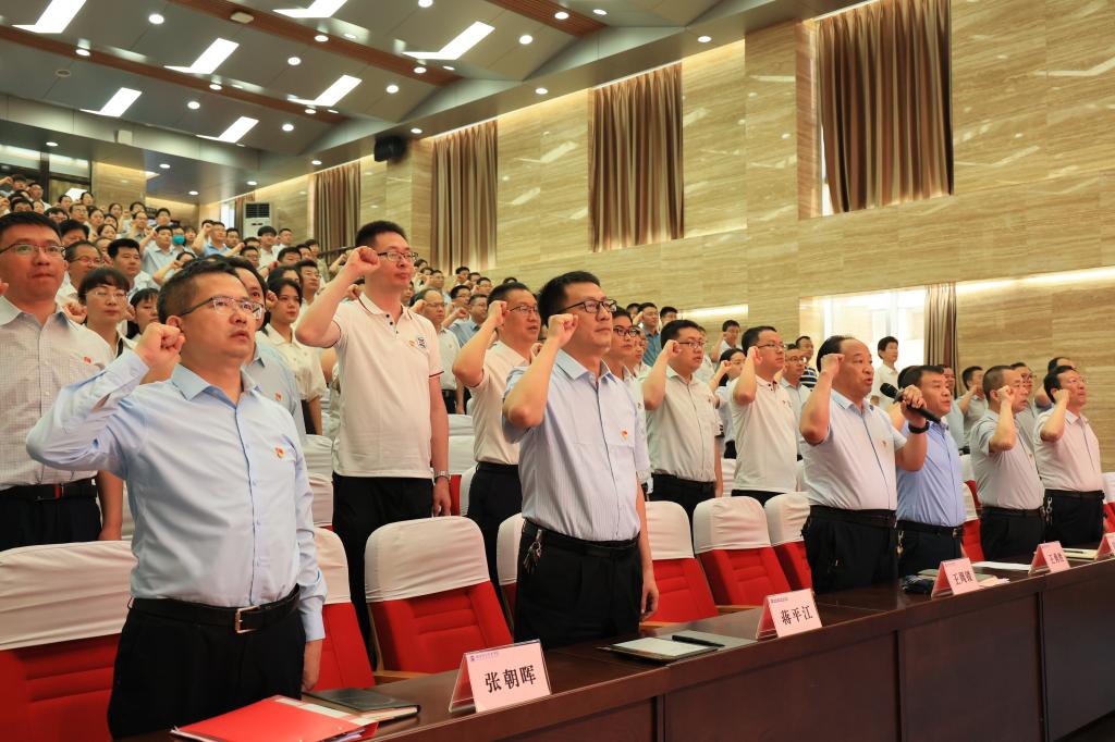大会在雄壮的国歌中拉开帷幕,王周锁带领全体与会同志重温入党誓词,激励广大党员永葆对党忠诚的政治品格,不忘初心担使命,砥砺前行再出发。
