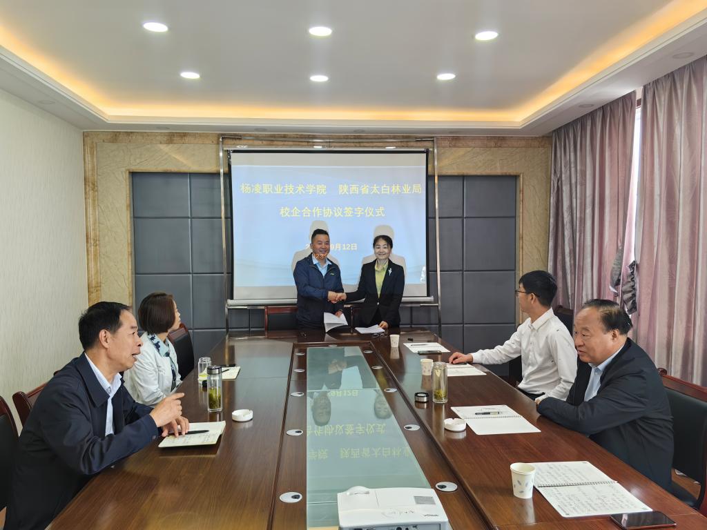 在太白林业局高山植物园,王周锁一行与太白林业局局长李瑞群、工会主席陈峰等进行了座谈交流,双方签署校企合作协议,并为产教融合实训基地揭牌。座谈会上,王周锁介绍了学校的发展历程、人才培养和招生就业等基本情况,希望双方以此次签订协议为契机,深化产教融合、科教融汇,在专业建设、实训实习、就业创业和秦岭生态环境保护等方面全面合作,打造校企合作新典范。陈峰对学校长期以来对太白林业局的支持表示感谢,希望双方在高山植物繁育、林木病害防治和林业信息化建设等领域开展技术合作、成果培育、人才培养,同时欢迎更多我校毕业生到太白林业局实习、就业。
