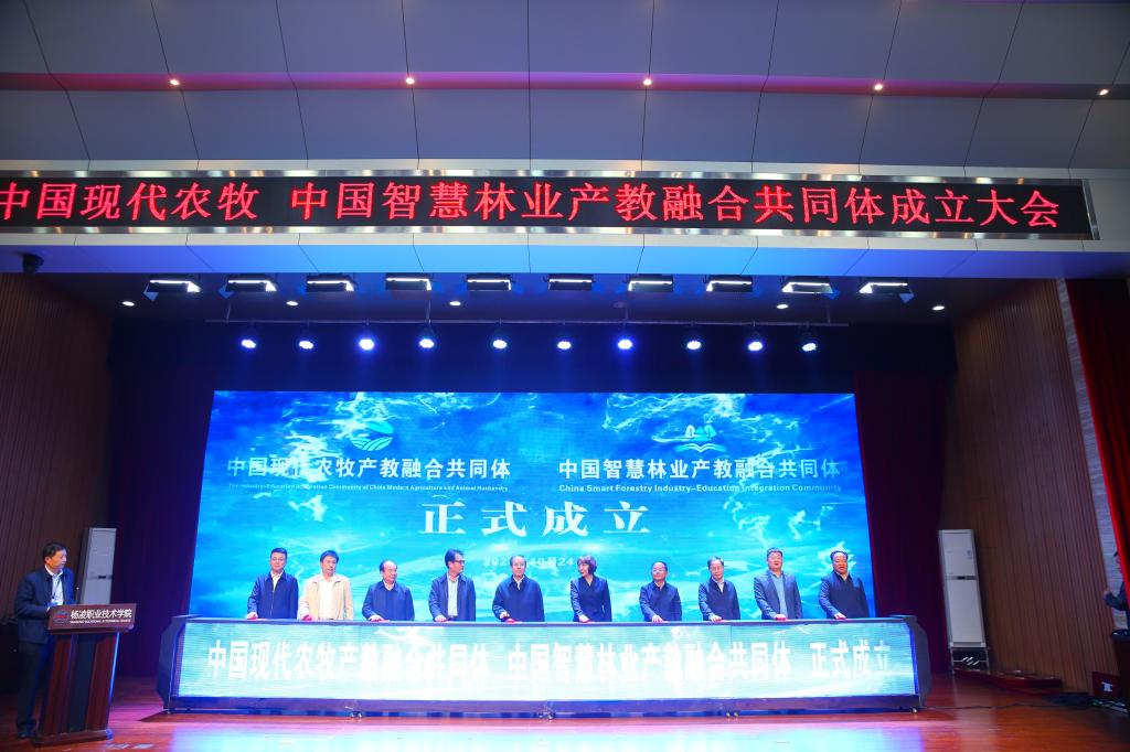 大会表决通过了中国现代农牧产教融合共同体和中国智慧林业产教融合共同体的章程、组织机构及成员,并对两个产教融合共同体的理事长单位、副理事长单位进行了授牌。