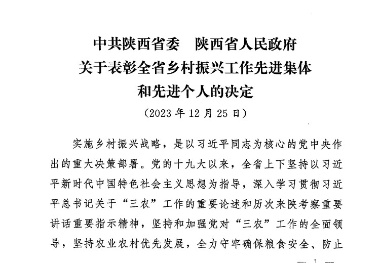近日,中共陕西省委、陕西省人民政府公布了2023年度全省乡村振兴工作先进集体和先进个人名单,我校马文哲老师获 “乡村振兴工作先进个人”称号。