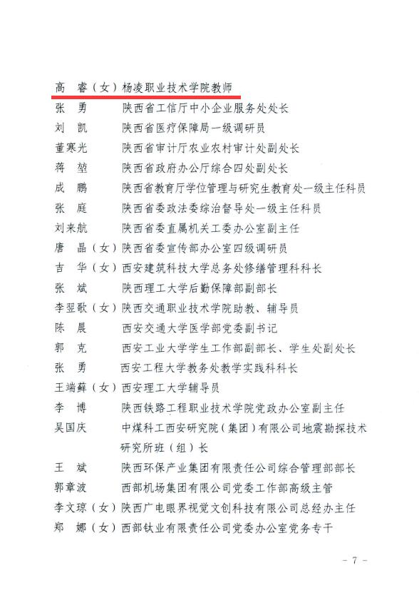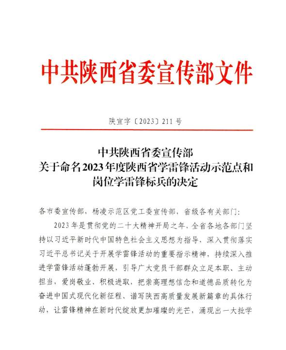 近日,省委宣传部公布2023年度陕西省学雷锋活动示范点和岗位学雷锋标兵名单,304am永利教师高睿荣获“陕西省岗位学雷锋标兵”称号。