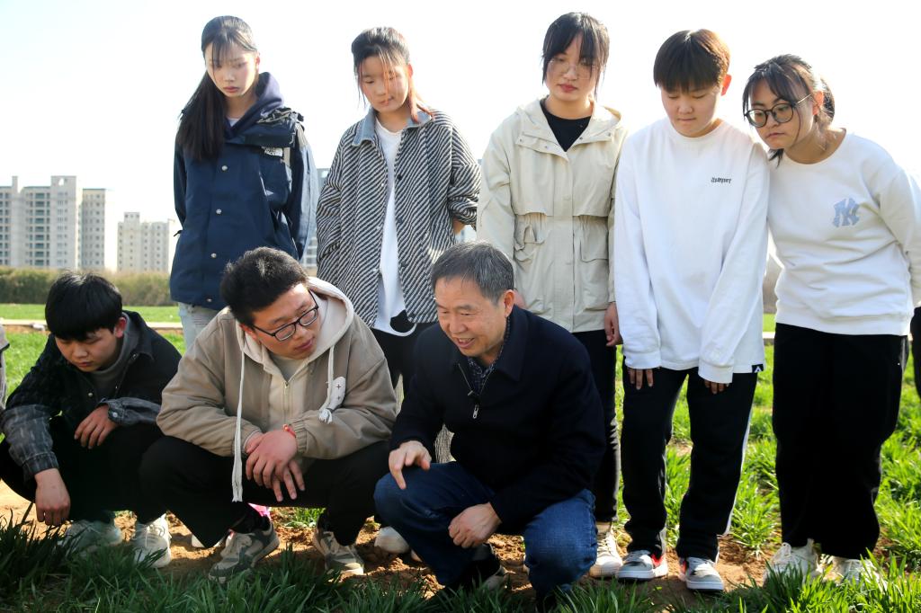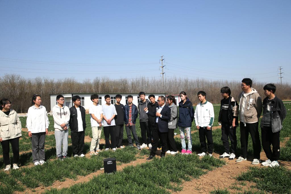 小麦田里话“两会”是学校在习近平总书记“3.18”重要讲话发表五周年和全国“两会”胜利召开之际举办的一项重要活动。3月12日上午,第二场小麦田里话“两会”活动在学校扶风豆村教学实验农场举行,小麦育种专家赵瑜研究员向同学们讲述了自己六十余年如一日扎根麦田育种的故事,并结合小麦的拔节孕穗期与青年学子的成长关键期,鼓励大家做有担当的新时代青年。随后,马克思主义学院教师薛敏围绕2024年中央一号文件,对千万工程、乡村振兴、农业强国进行了宣讲和解读。