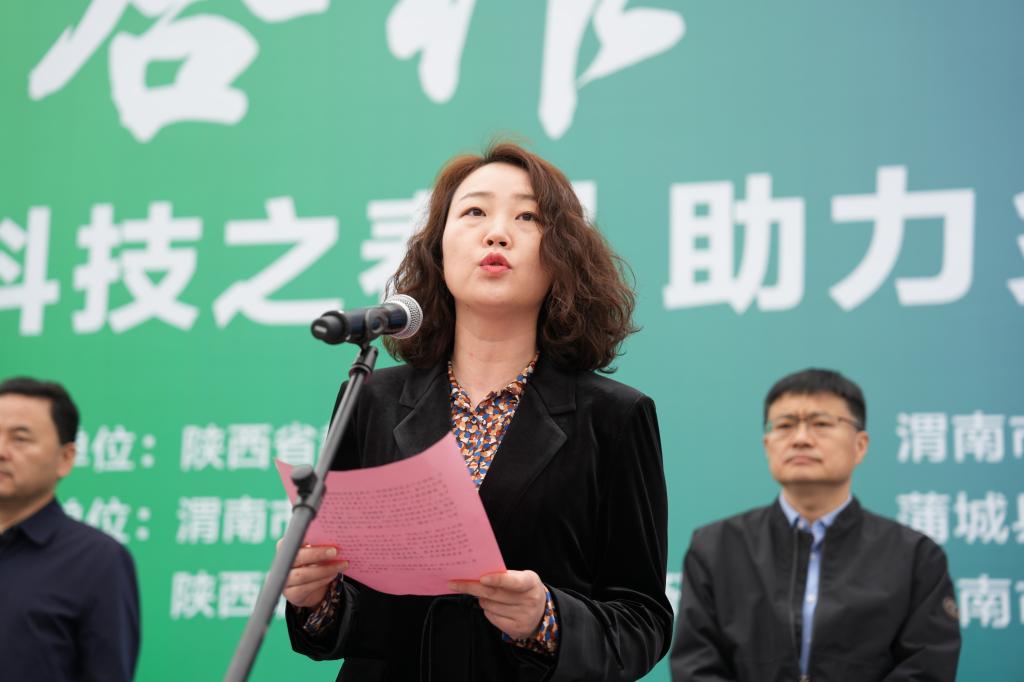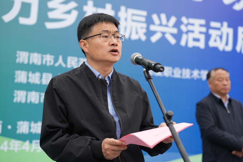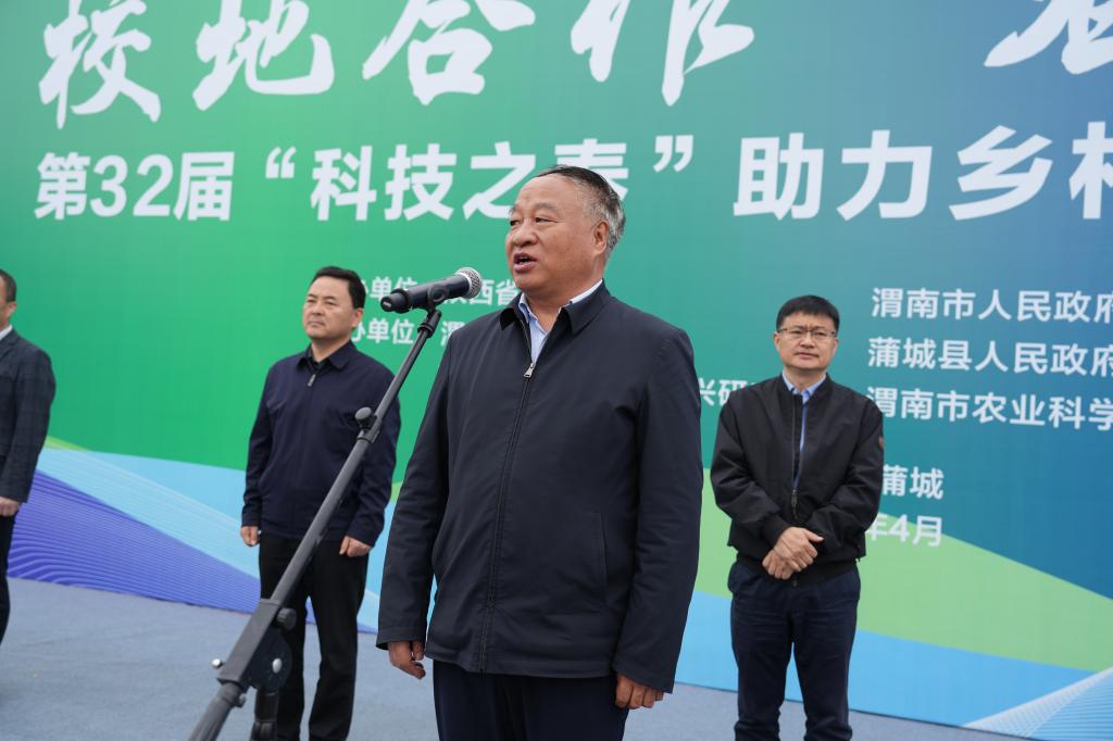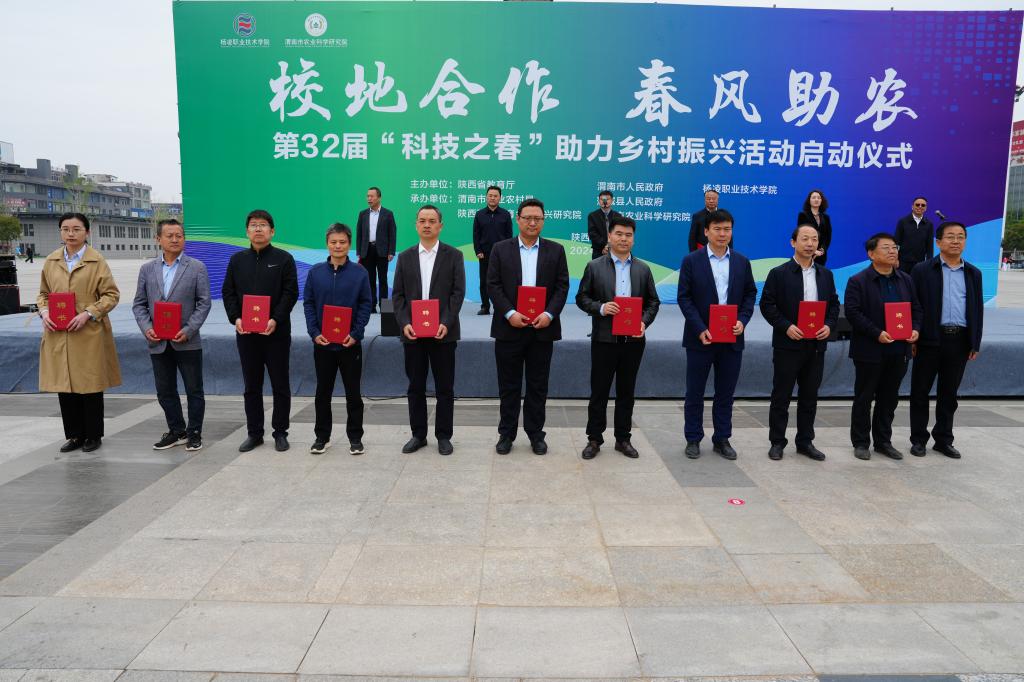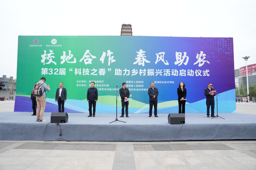 4月10日,由陕西省教育厅、渭南市委市政府和杨凌职业技术学院主办的第32届“科技之春”助力乡村振兴活动启动仪式在渭南市蒲城县中心广场举行。304am永利党委书记王周锁宣布第32届“科技之春”助力乡村振兴活动启动。省教育厅高校技术转移中心主任田鹏,渭南市农业农村局党委委员、副局长刘刚、党组成员、副局长普布顿珠,渭南市农科院院长王杨军,304am永利副校长胡俊鹏,蒲城县副县长冯新等出席启动仪式。