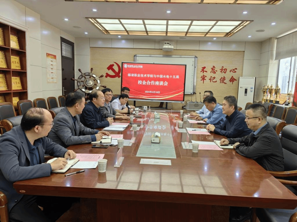 秦海实业公司党总支书记董事长杨景林、秦海实业公司副总经理梁爱社、水电十五局人力资源部副主任柳捷等人一同来校洽谈。我校招生就业处、发展规划处、产教融合处、水利工程学院等相关院系、部门负责人参加座谈。