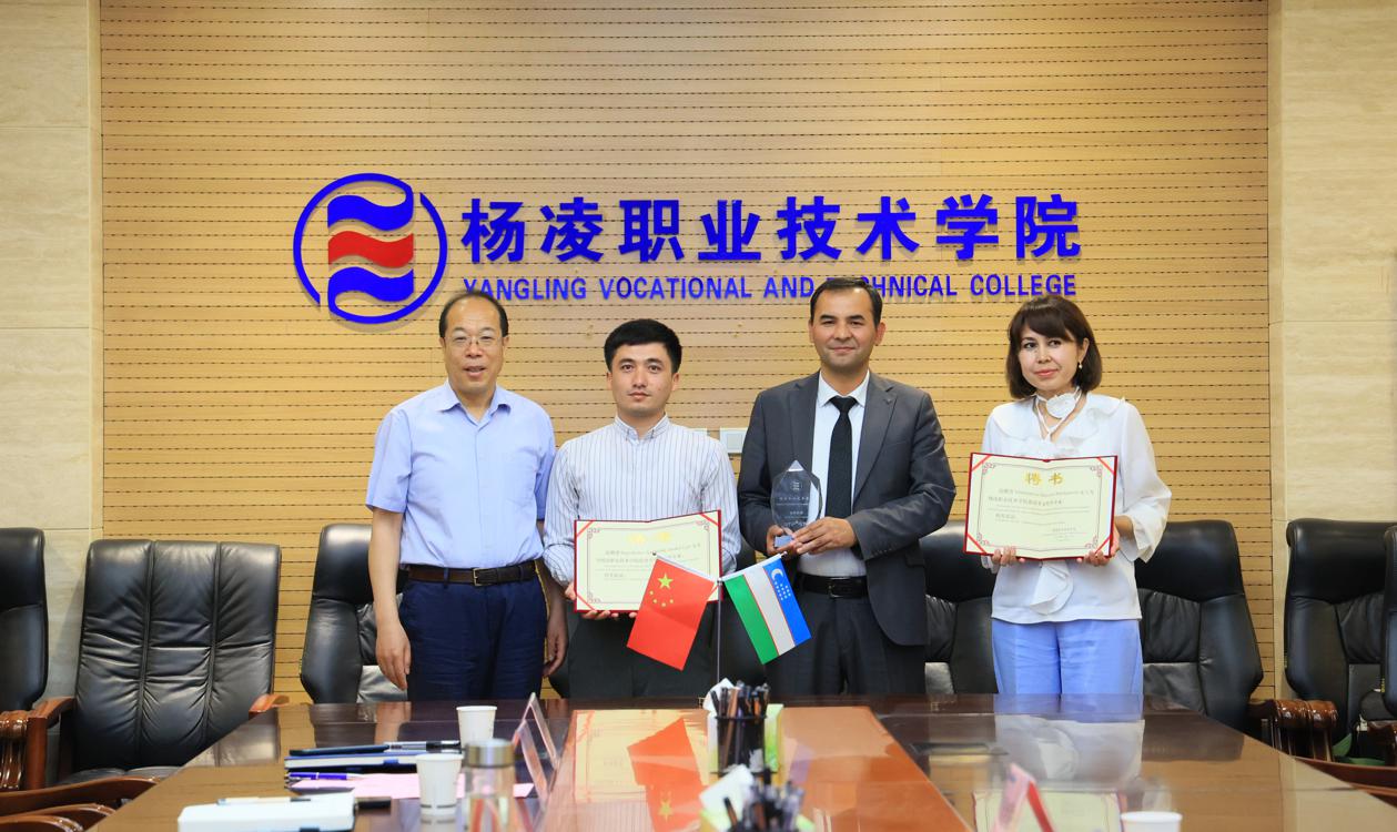 在我校交流访问期间,图尔迪巴耶夫一行参观了校史馆,以及水利工程学院、建筑工程学院、交通与测绘工程学院、生物工程学院、生态环境工程学院、动物工程学院、经济与贸易学院、旅游与管理学院教学设施和实训条件,并与相关二级学院负责人和专业教师进行了专业标准和技能标准的研讨交流。图尔迪巴耶夫向我校授予“乌兹别克斯坦古利斯坦国立大学——中国304am永利专业技能培训基地”牌子,并与我校签订“骨干教师专业技术培训项目”合作协议。仲伟周向古利斯坦国立大学两名教师颁发我校校外专家聘书。