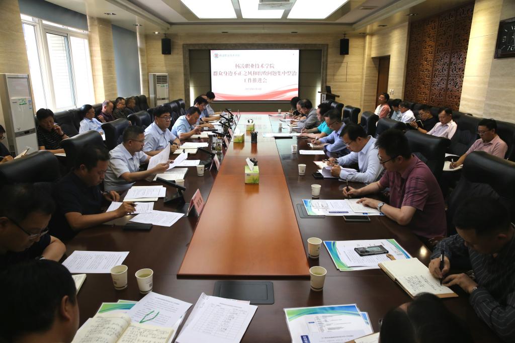 6月4日下午,学校召开群众身边不正之风和腐败问题集中整治工作推进会。党委副书记刘瑞明,党委副书记、纪委书记王勇胜,副校长张朝晖,以及各党总支(直属党支部)书记、各处室负责人参加了会议。