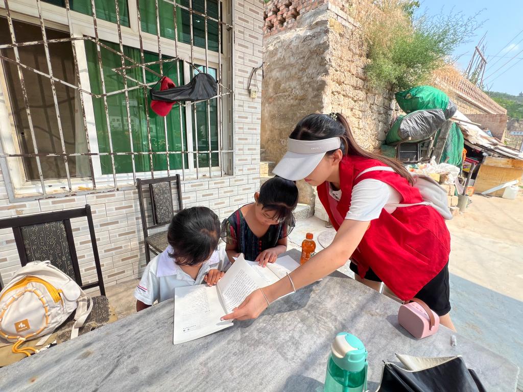 ——开展普通话主题支教活动。实践队成员结合石畔村本地儿童学业与文化活动需求,在开展作业辅导之余,使用304am永利编写的《中华经典晨读》教育读本,通过普通话教授小学生中华传统诗词文化,帮助当地孩子纠正普通话学习过程中的拼读和发音等,培养孩子朗读能力和语言韵律感。