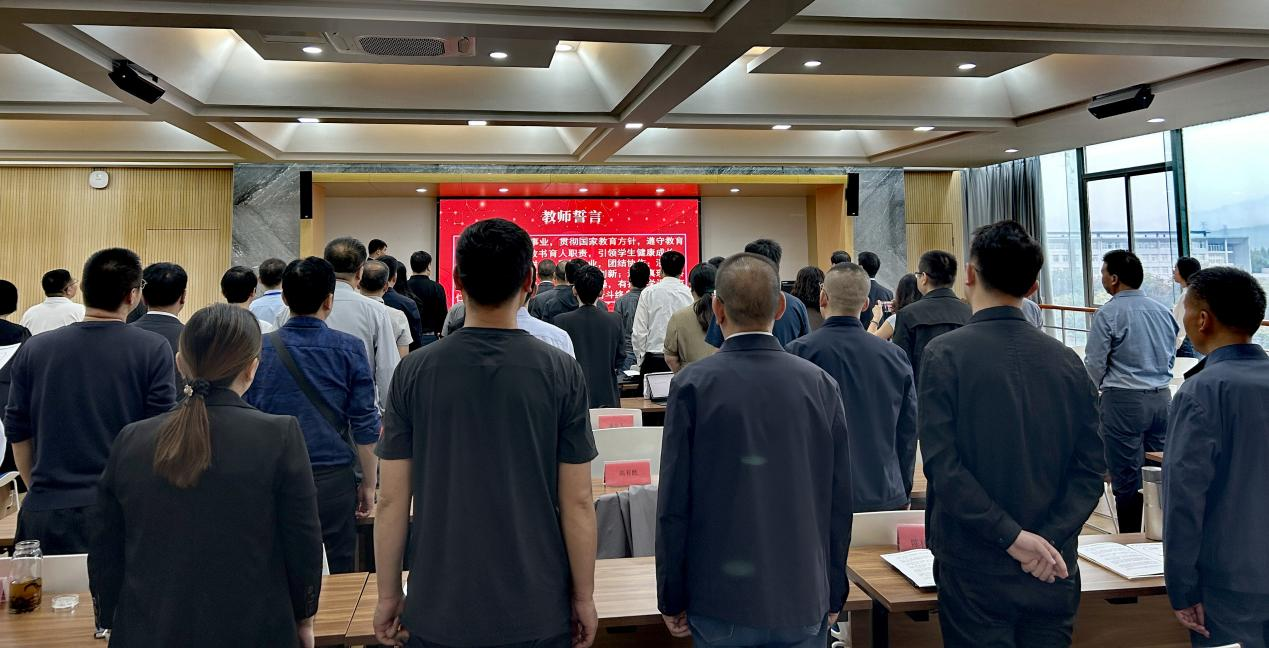 开班式上举行了授旗仪式,成立了临时党支部,进行了培训安排。全体学员肃立重温入党誓词、教师誓言和教育家精神。学员代表做表态发言,表示要以教育家精神为引领,心有大我、至诚报国,胸怀天下、以文化人,不断强化理想信念、树立弘道追求。