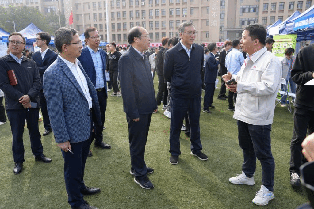 党委书记韩明军,校长仲伟周,党委副书记刘瑞明,党委副书记、纪委书记王勇胜,副校长胡俊鹏、张朝晖等深入招聘会现场,看望用人单位代表,详细了解招聘情况,询问用人单位对学校专业设置、人才培养和校企合作等方面的意见建议;与相关学院负责人畅谈,深入了解2025届毕业生就业概况,要求各二级学院积极开拓就业渠道、有效挖掘岗位资源,推动校企合作走深做实;与毕业生亲切交流,鼓励同学们抓住机遇、主动出击,早日找到心仪工作,在工作岗位上发光发热。
