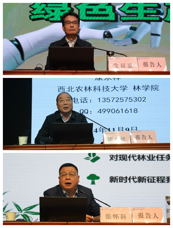 在专家报告阶段,陕西人大常委会委员党双忍、西北农林科技大学康永祥、陕西楼观台国有实验林场张怀科分别作了《绿色生产力——生产力质态论》、《古树名木保护探索与实践研究》、《林业——伟大的事业,光辉的职业》三个主旨报告。