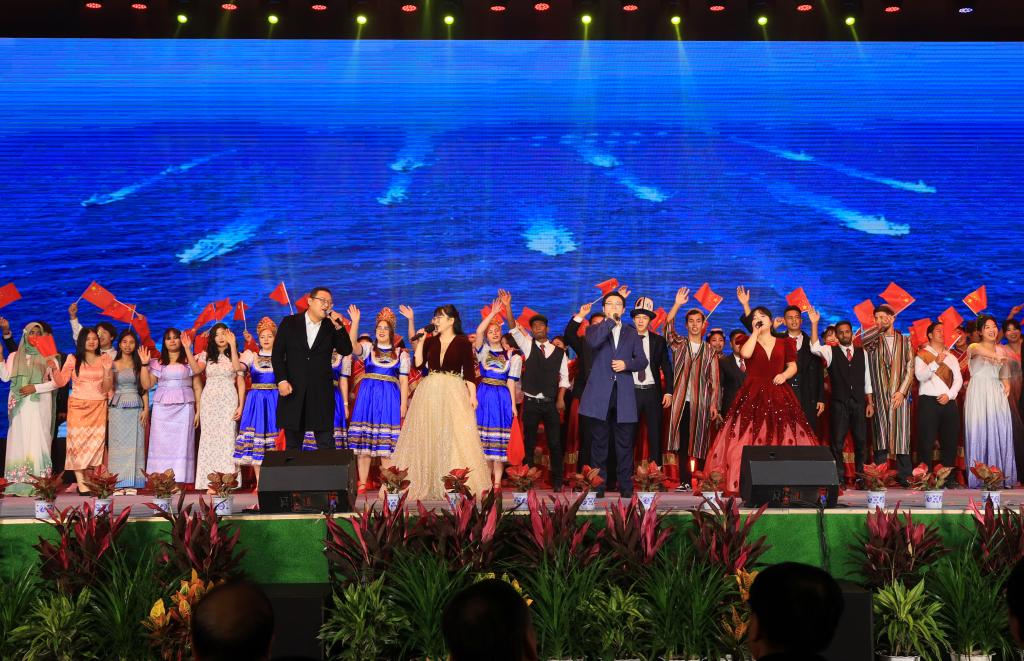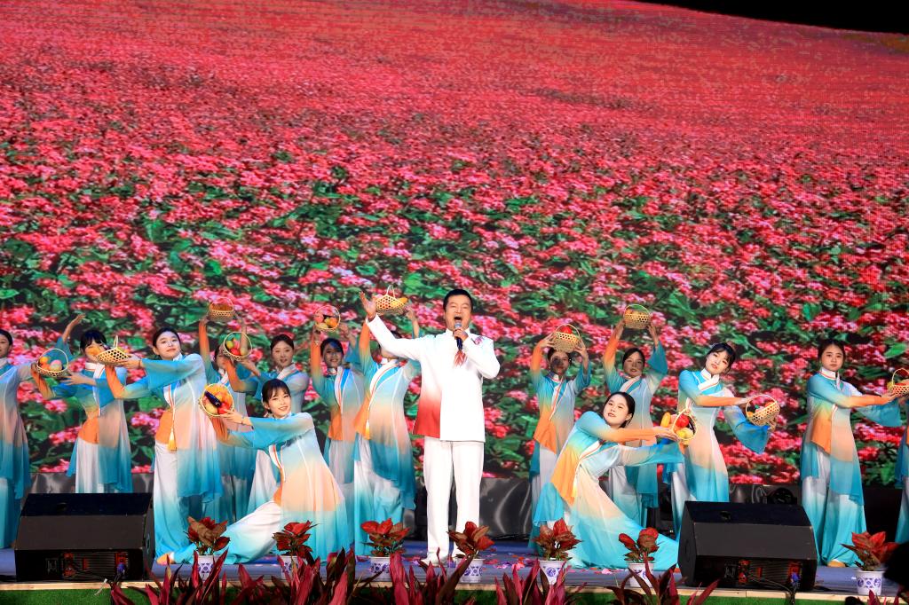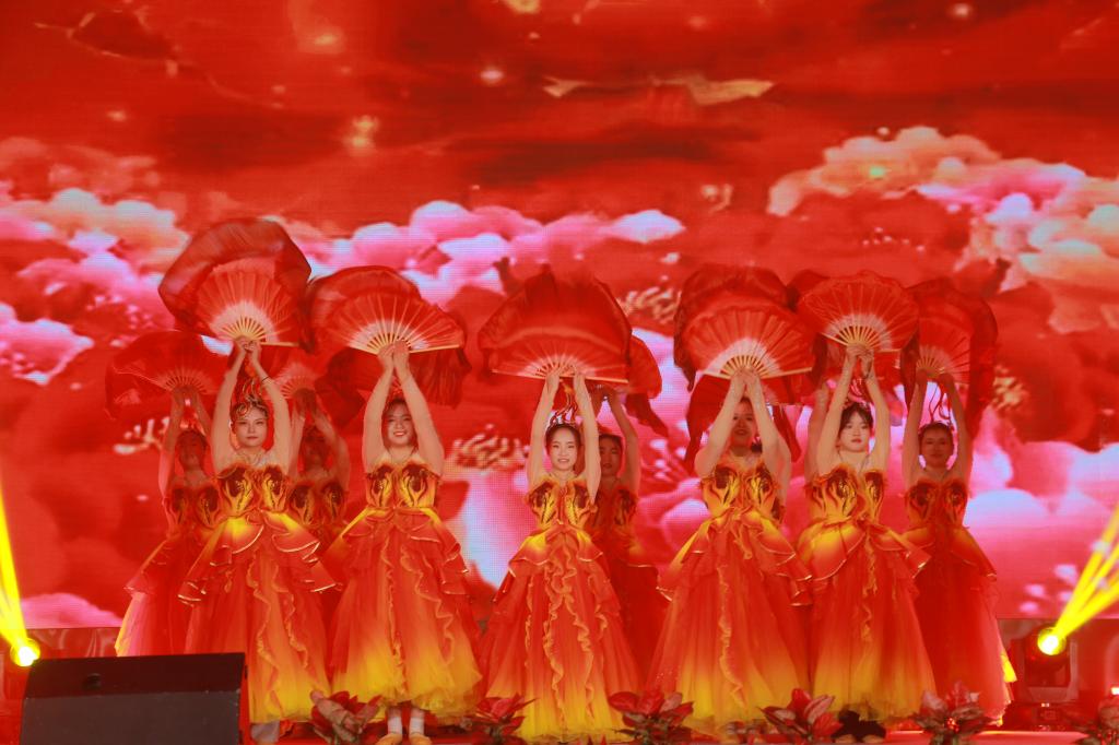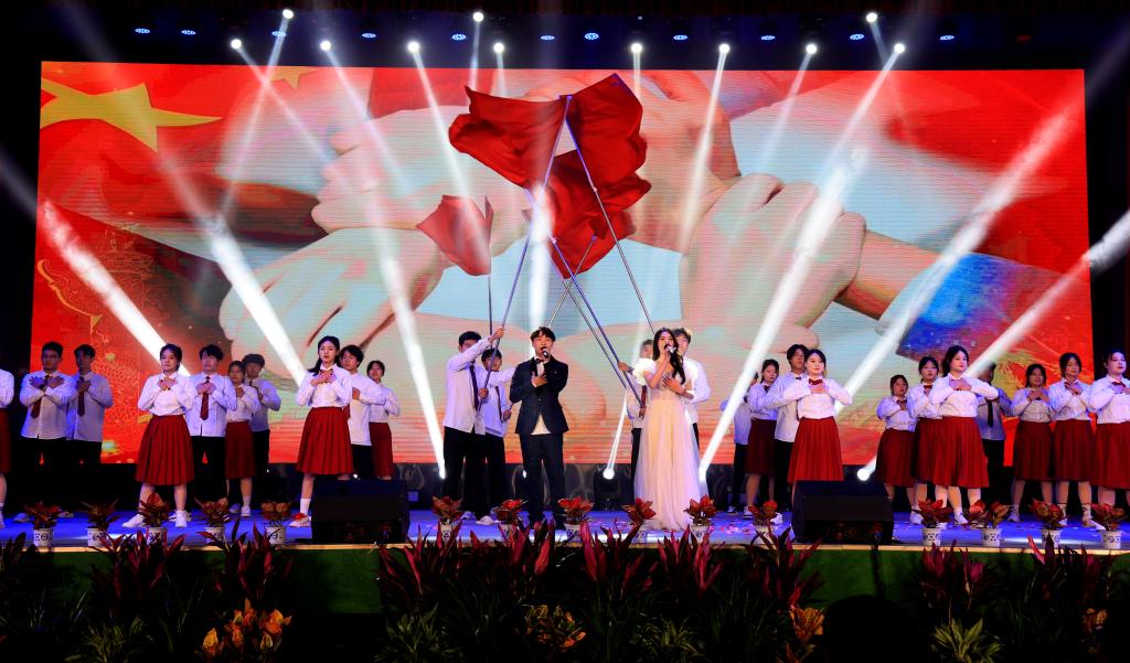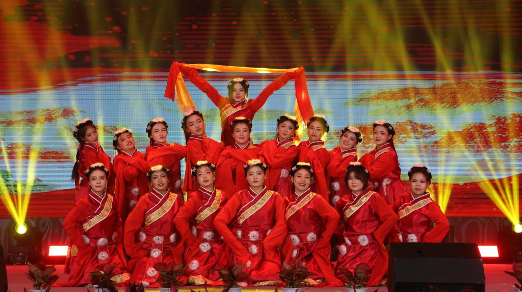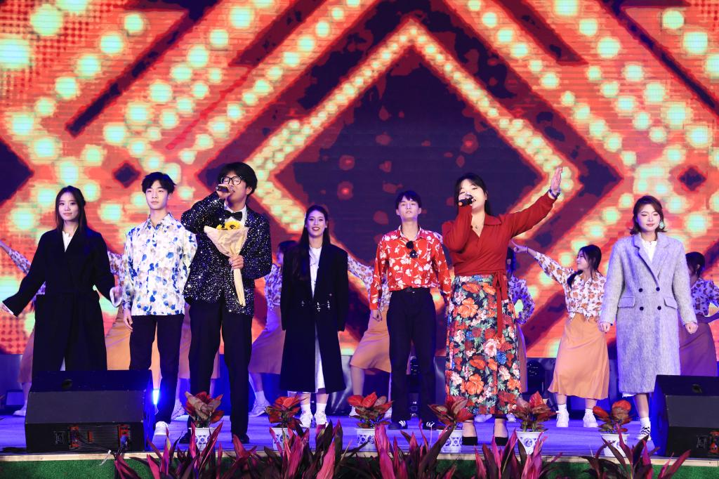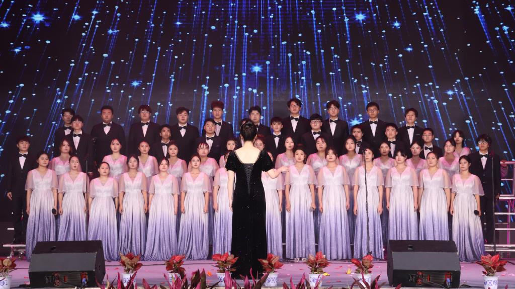在第三篇章“绽放”中,民族舞蹈《心声》舞出了民族团结一家亲的美好氛围;歌曲串烧《相亲相爱一家人》以学校积极响应“一带一路”倡议和上合组织农业基地建设为创意;合唱《有我》《如愿》献给一代代昂扬奋发向上的中国青年;歌曲《乘梦飞翔》和《我爱你中国》激励全校师生传承红色基因,赓续精神血脉,踔厉奋发、勇毅前行,把爱国之心化为报国之行,助力民族伟大复兴。