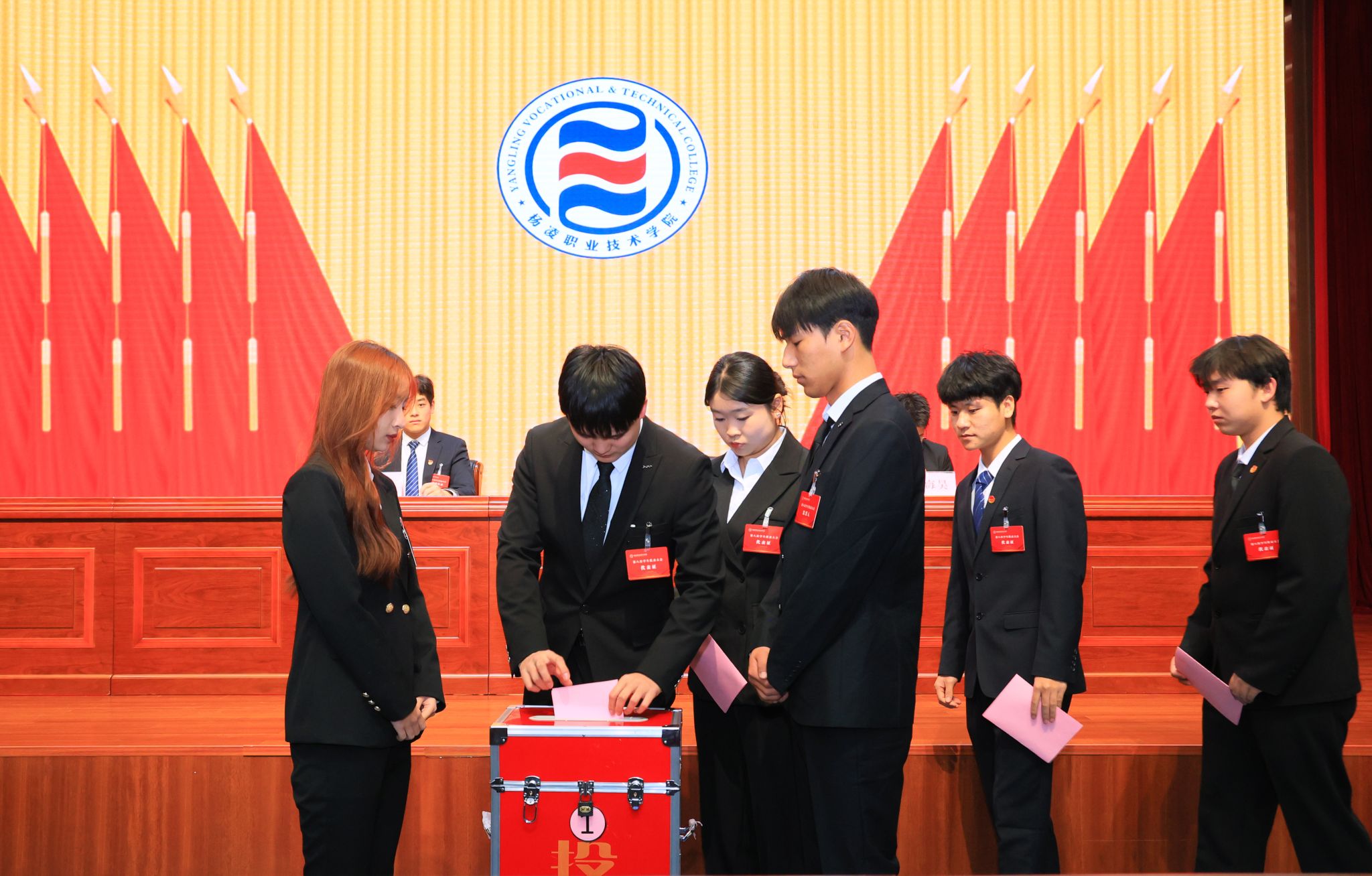会议听取并审议通过了《304am永利第七届学生会委员会工作报告》《关于深入学习宣传贯彻党的二十届三中全会精神,聚焦主责主业,巩固改革成果,凝心聚力服务学校高质量发展、服务同学成长成才的决议》。大会选举产生了第八届学生会委员会委员11名、主席团成员5名。全体与会代表向全校广大青年学生发出倡议,希望学子青春挺膺担当,矢志砥砺奋斗,做坚定理想、担当尽责、明德律己的杨职青年。