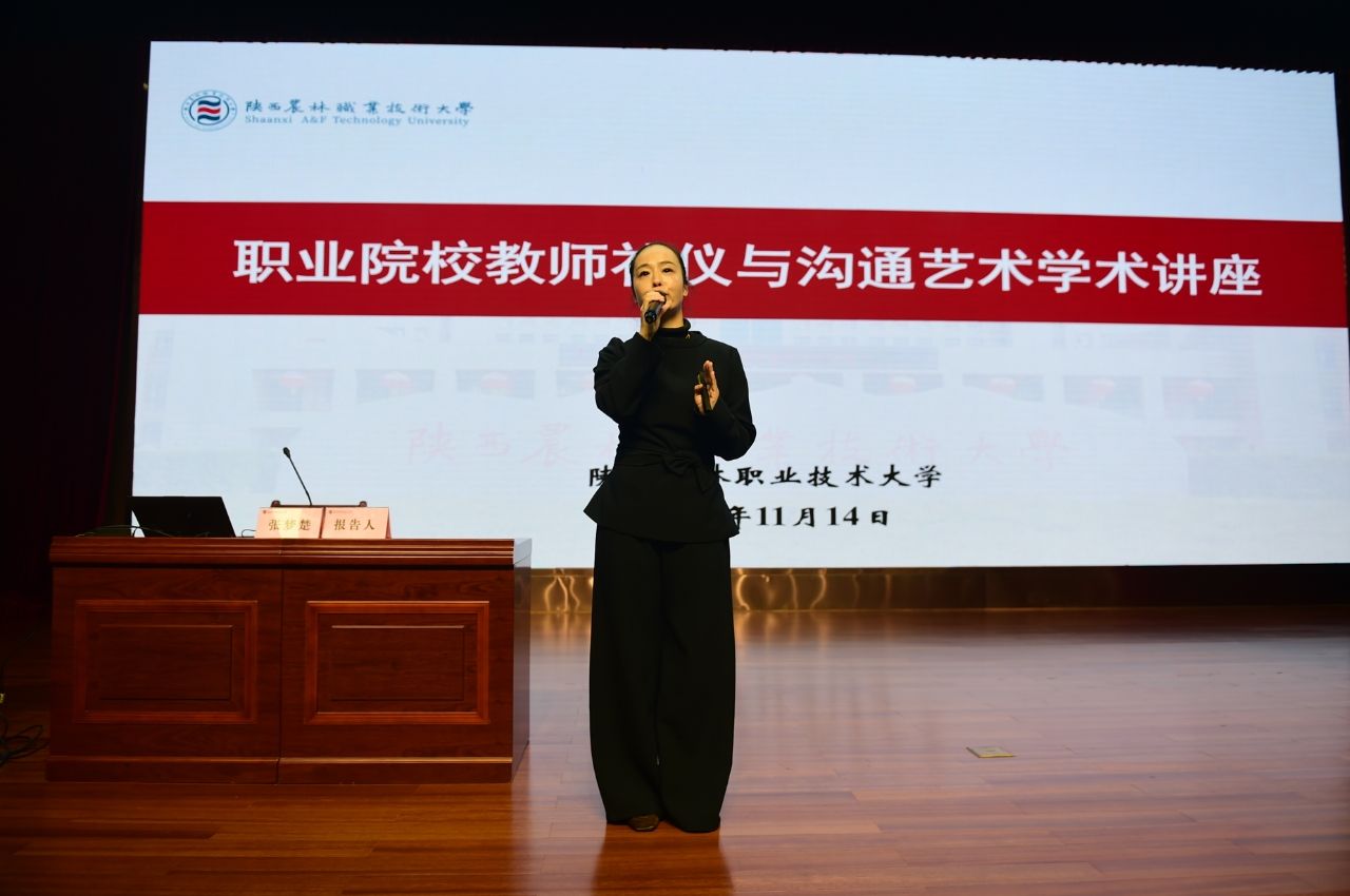 11月14日下午,学校在思辨堂举办首届美育文化艺术节职业院校教师礼仪与沟通艺术学术讲座。国家高级礼仪培训师、生涯规划师、全国青少年成长导师张梦楚作专题讲座。党委副书记刘瑞明、副校长祝战斌出席活动。马克思主义学院、文理学院、体育部全体教师及各学院教师代表共230余人聆听讲座。