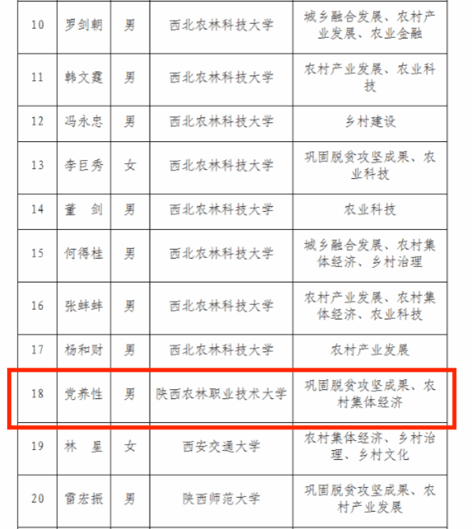 党养性教授是我校社科联副主席兼秘书长、学术委员会委员,陕西职业教育乡村振兴研究院副秘书长,陕西省职业教育教学工作专家库专家、首批“新时代文明实践”宣讲师,主要研究领域为巩固脱贫攻坚成果、农村集体经济、乡村振兴等,先后主持省级重点攻关项目、乡村振兴课题7项,获国家级教学成果奖、陕西省哲学社会科学奖等省级以上奖励13项。