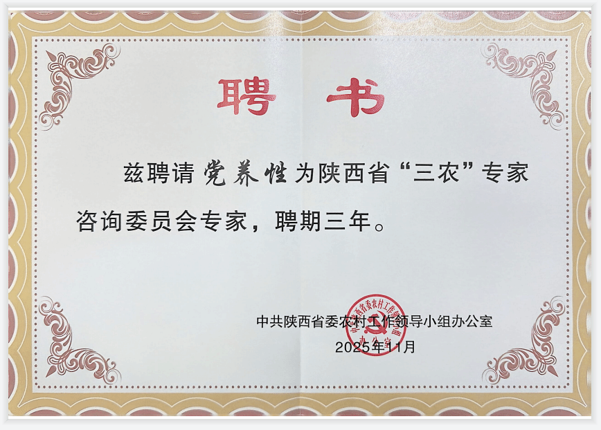 近日,省农业农村厅公布了“三农”专家咨询委员会第一批专家名单。我校党养性教授获聘,聘期三年。