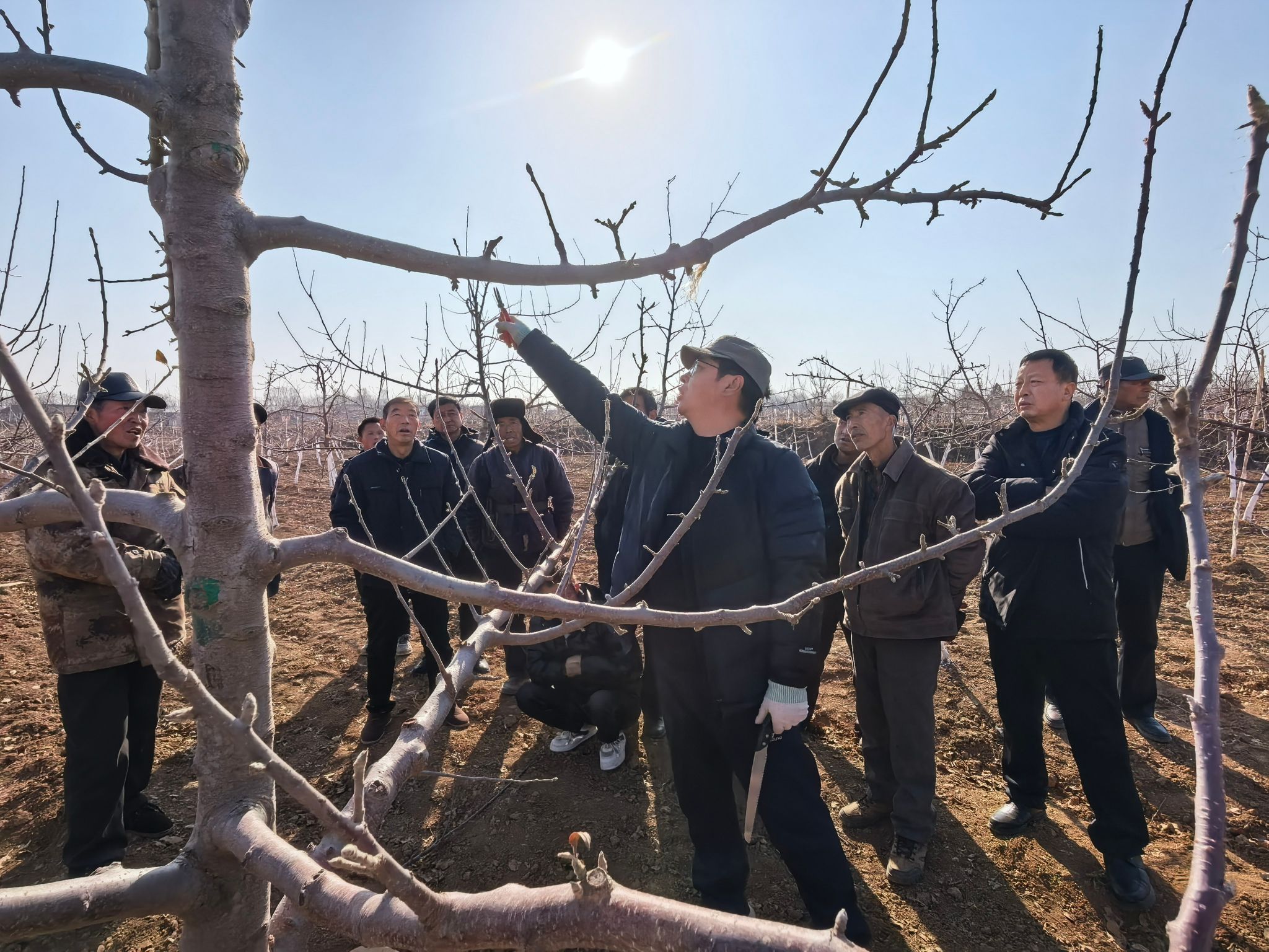 结合调研实际及与果农深入交流掌握的产业痛点,服务团以苹果冬季修剪技术为重点,下沉北极镇、永乐镇、龙高镇等地开展了6场专题技术培训。培训主要聚焦苹果树势控旺、弱树更新、整形定冠等关键技术环节,秉持“一园一策”“一树一方”的精准指导思路,为果农系统讲解技术要点、现场示范操作规范,切实帮助果农提升冬季果园管理水平。