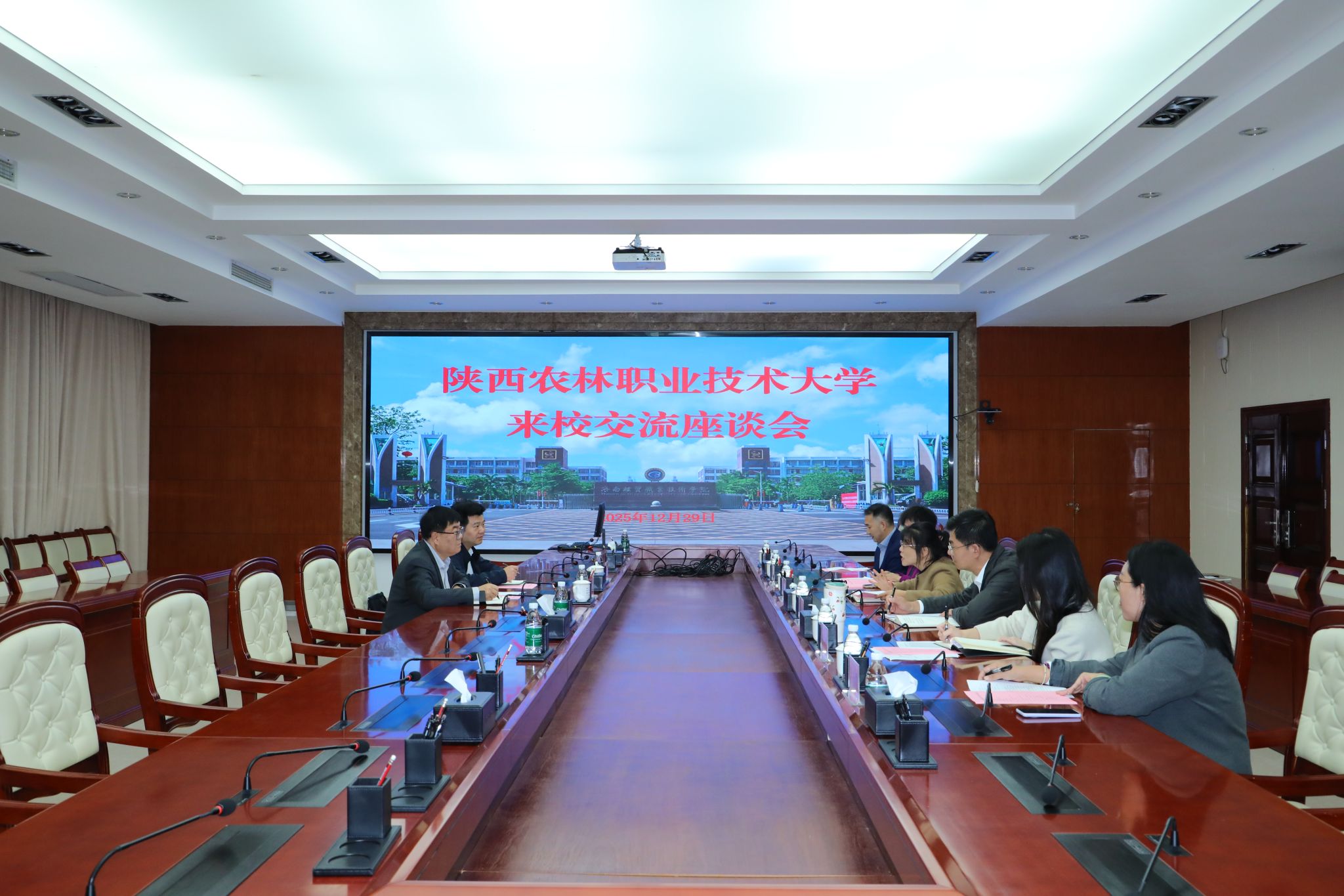 12月29日,党委副书记刘瑞明带队赴海南经贸职业技术学院考察交流。海南经贸职业技术学院副校长杨娜,宣传统战部、组织人事处、马克思主义学院有关负责人及我校马克思主义学院负责人参加。