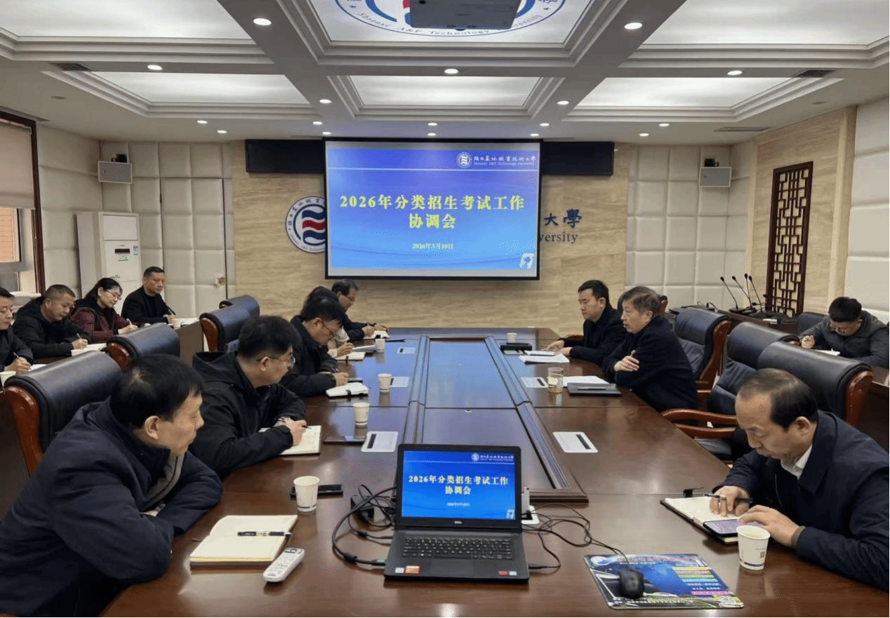 3月10日上午,学校召开2026年分类招生考试工作协调会,副校长祝战斌出席会议并讲话。各学院负责人,党委宣传部、纪委监督检查室、团委、教务处、招生就业处、学生处、后勤保障处、保卫处、信息化管理处、财务处相关负责人等参加会议。